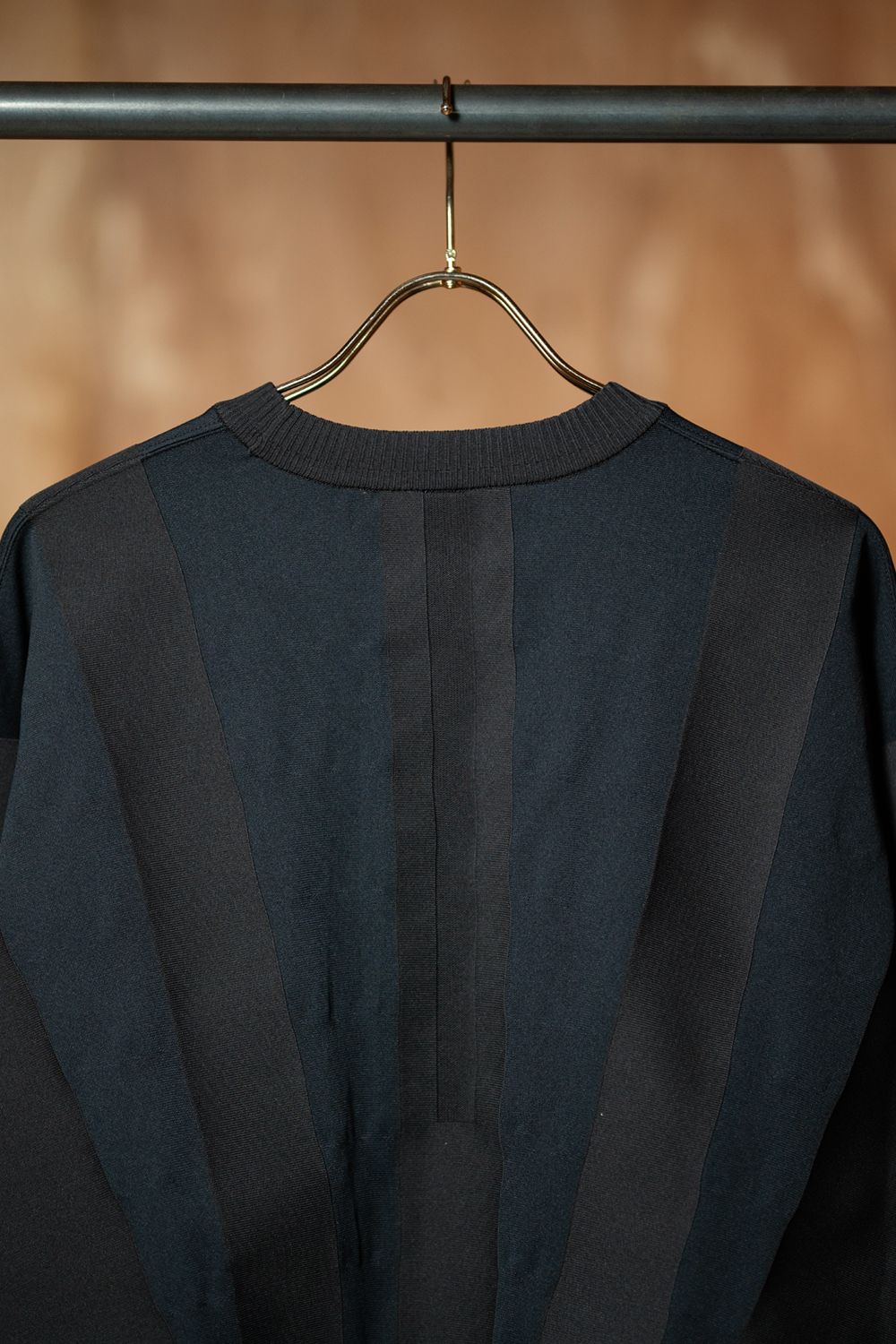 円錐状の切り替えが特徴のプルオーバー。高密度で厚みのあるユニークな編み地で、ゆったりとしたシルエットが現代的な印象を演出します。