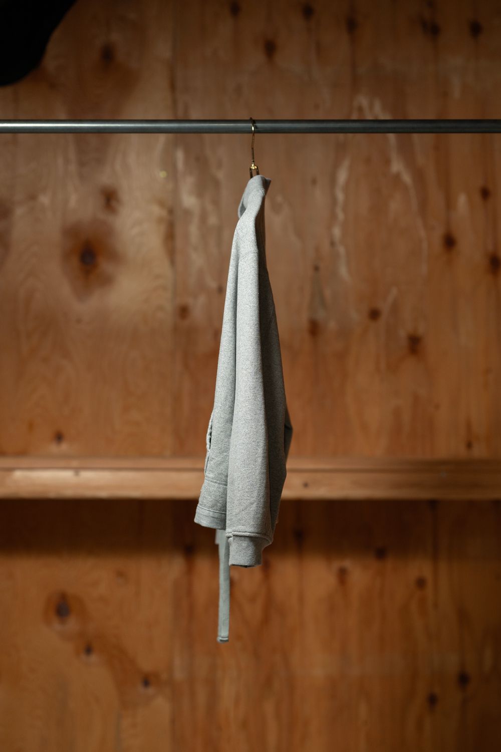空気を含ませた太番の空紡糸を使用した超度詰め裏毛に硬化加工を施し布帛のようなシャリ感を表現しています。