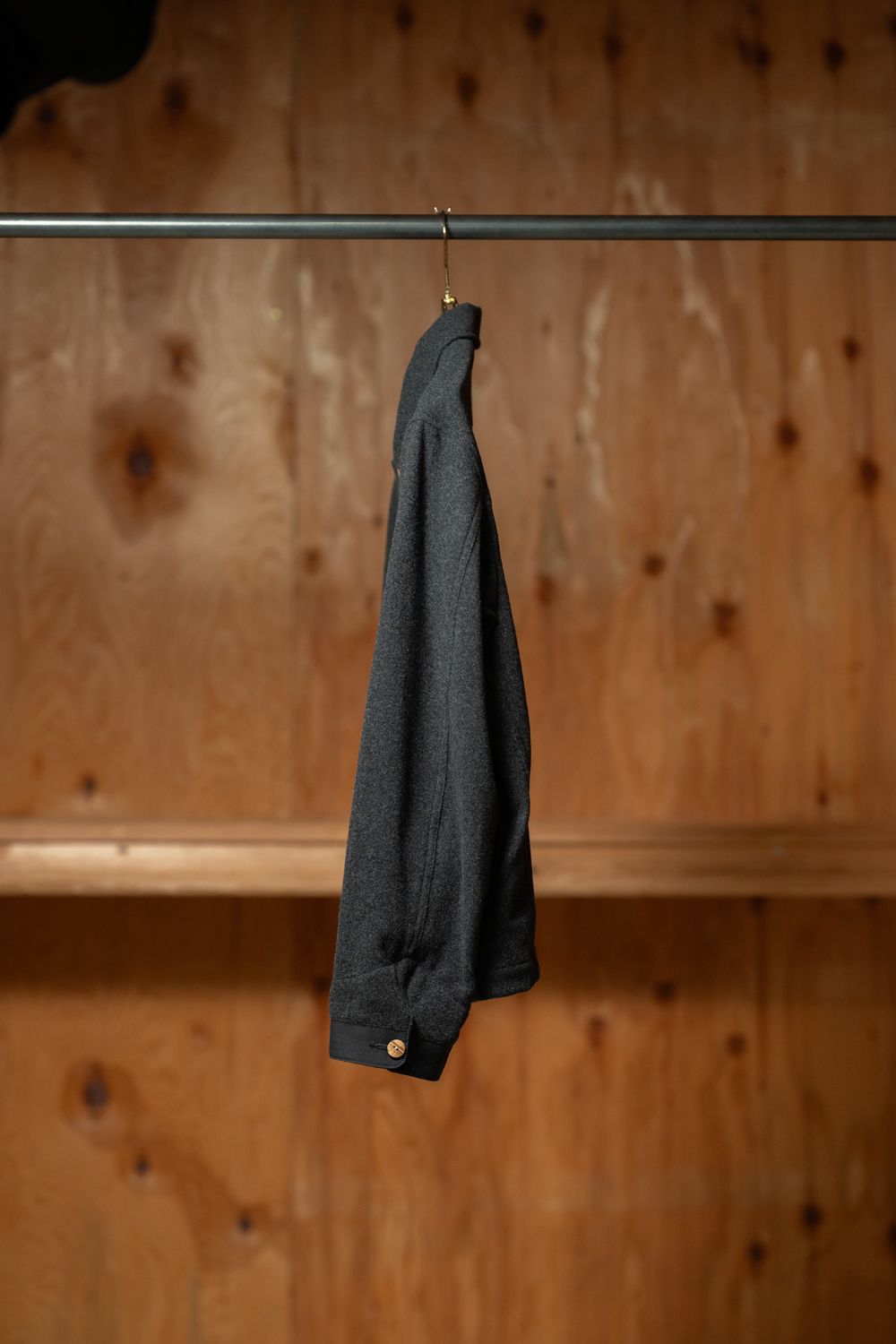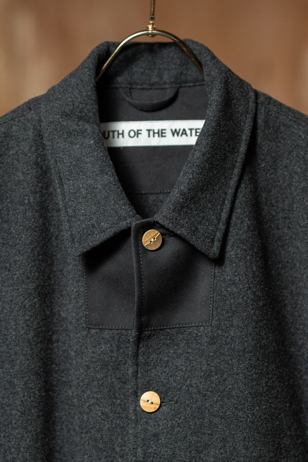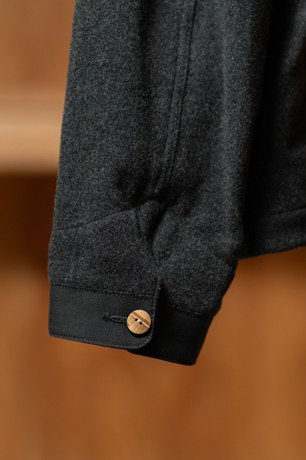 メルトン素材でありながら、生後間もないラムウールならではのしなやかさがあり、着用時には体を優しく包み込みます。ボタンには、長い時間をかけて風合いを深めるとされる竹素材を使用。