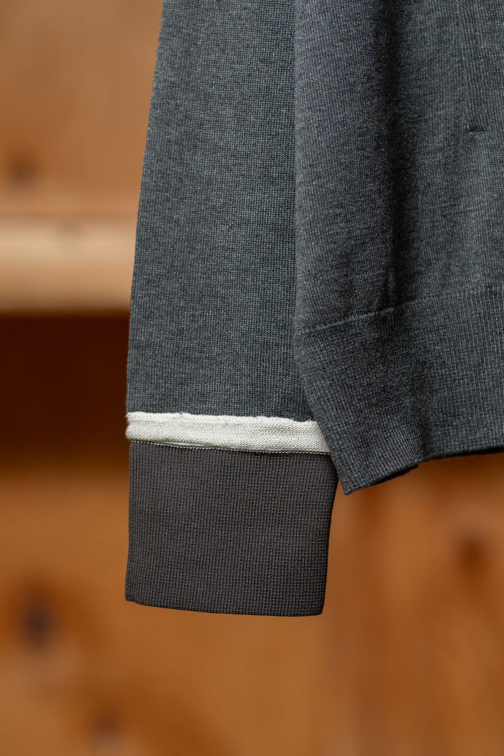 袖口部分リブはポリエステル100%の糸で編み立て、ローラーヒート加工を施し、編み立てリブを溶かし糸を一体とする事で強度を高めています。