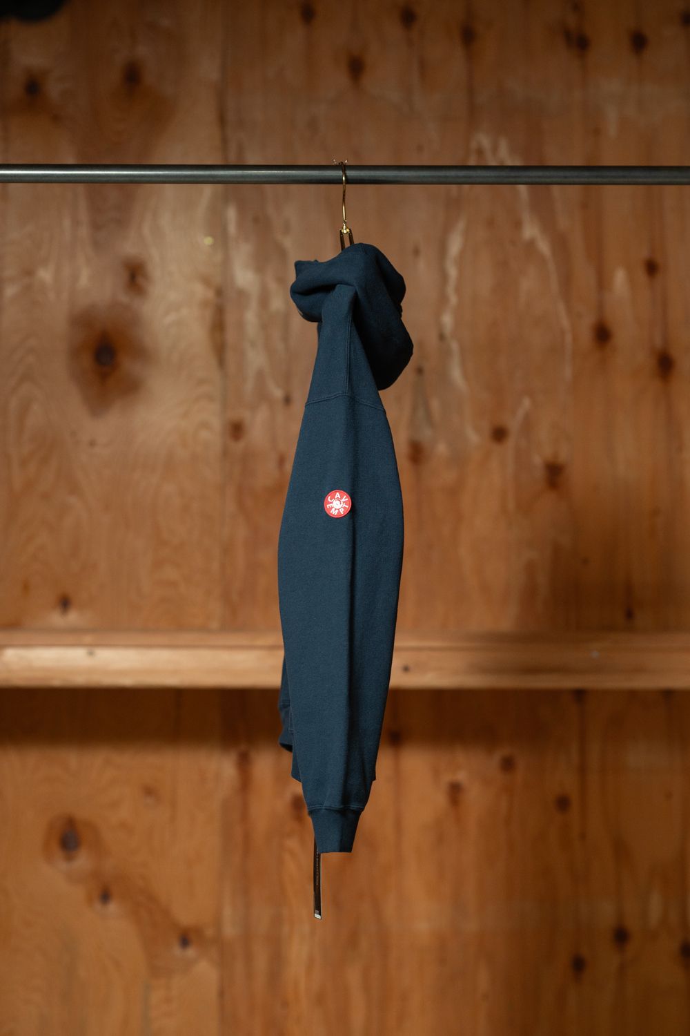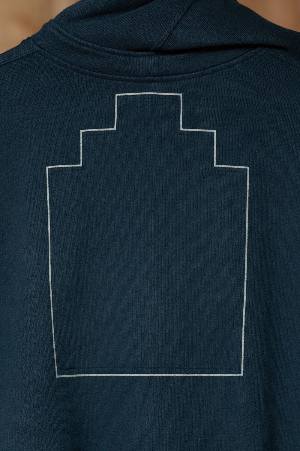 100%コットン。二重編み生地。プルオーバー。セットインスリーブ。前身頃ショルダーに刺繍でCAV EMPT。後ろ身頃裏に布パッチ。後ろ身頃表にリフレクタープリント。左袖上部にシリコンパッチ。前身頃にウェルトポケット。フードにボタン。ワイドシルエット。ウォッシュ加工。日本製。