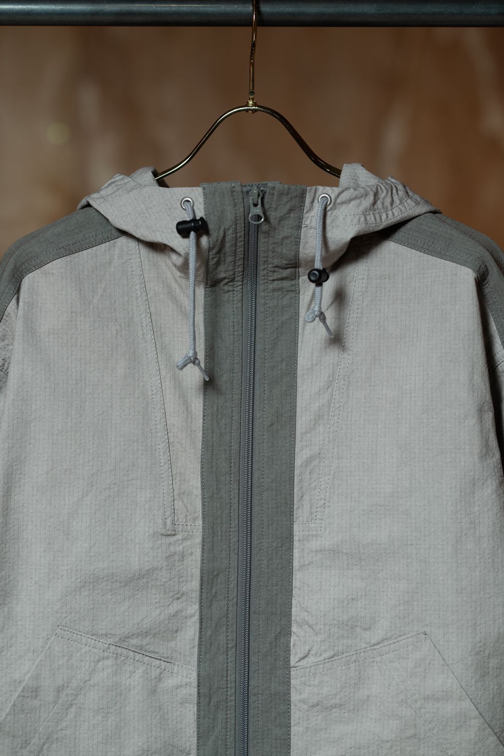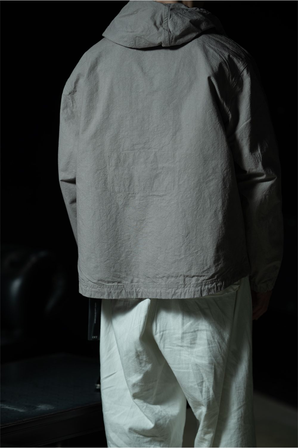 フードにはドローストリングを配置。
