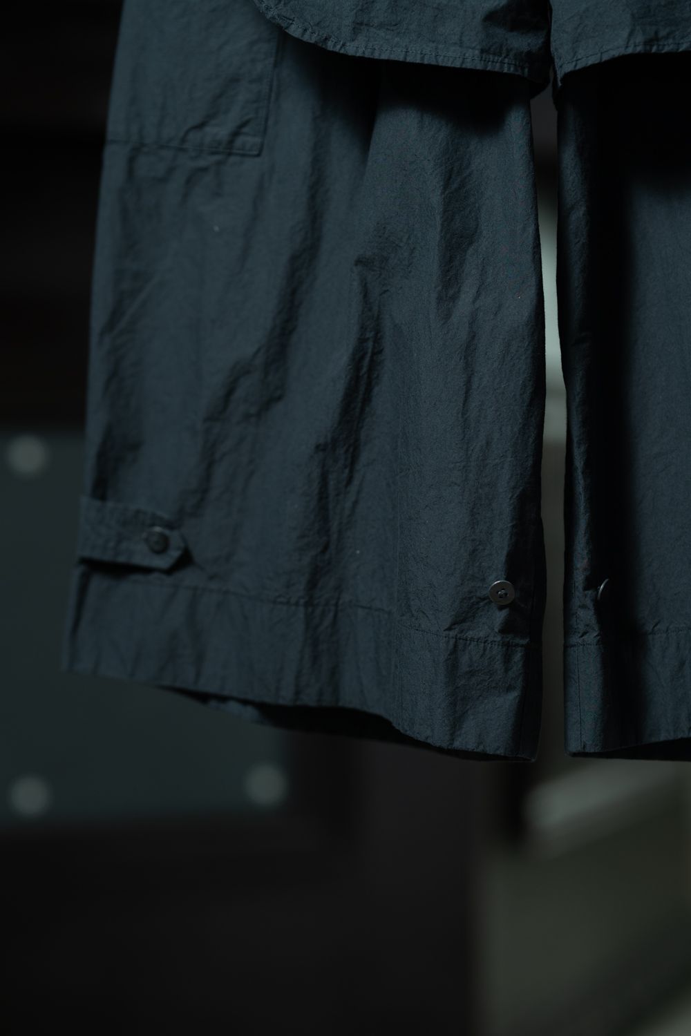 裾にはボタン付きストラップ。