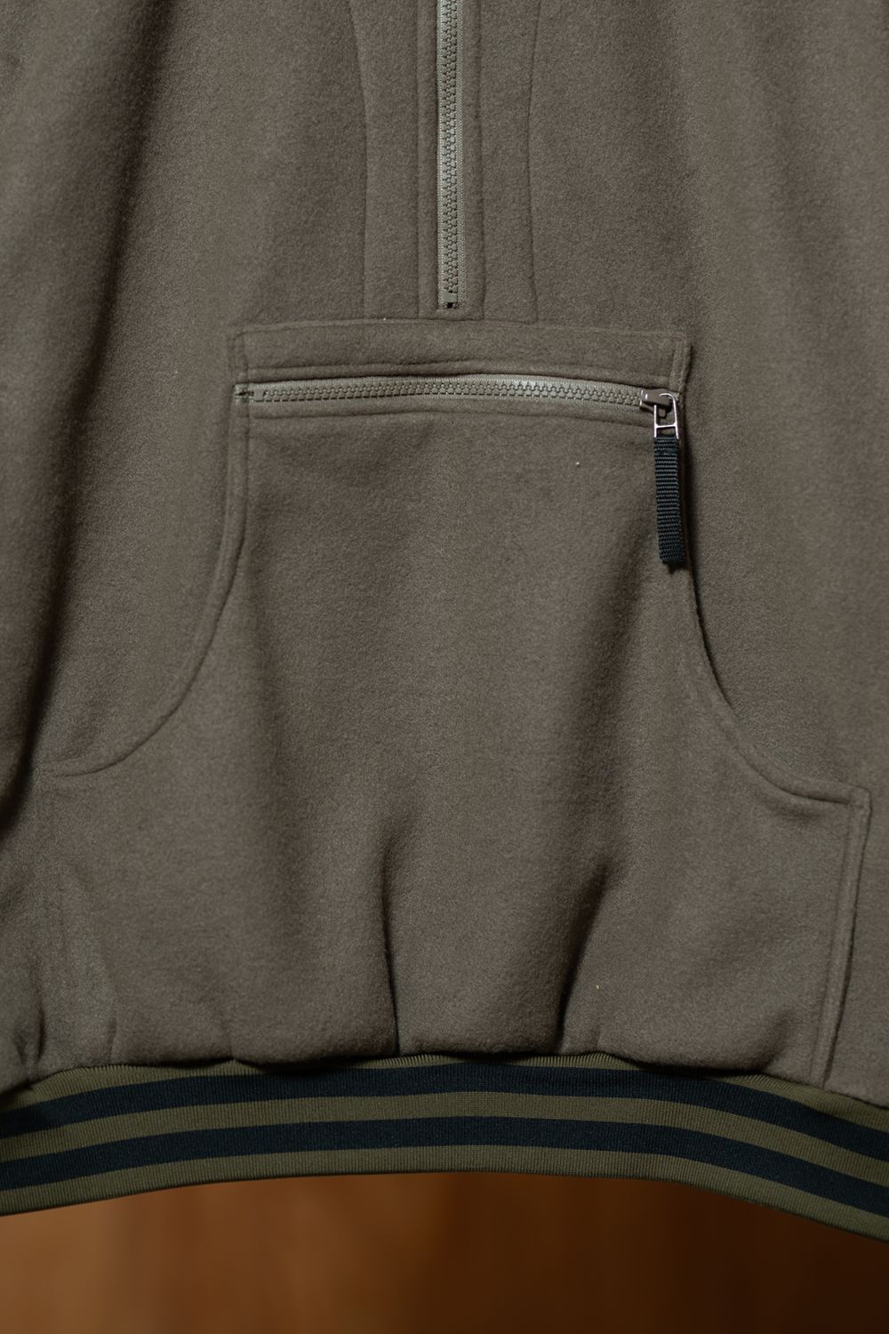 スタンドネック仕様のハーフジップ。