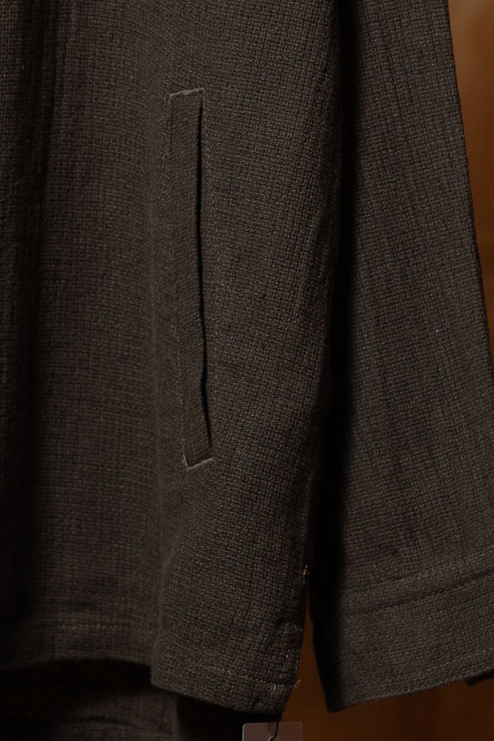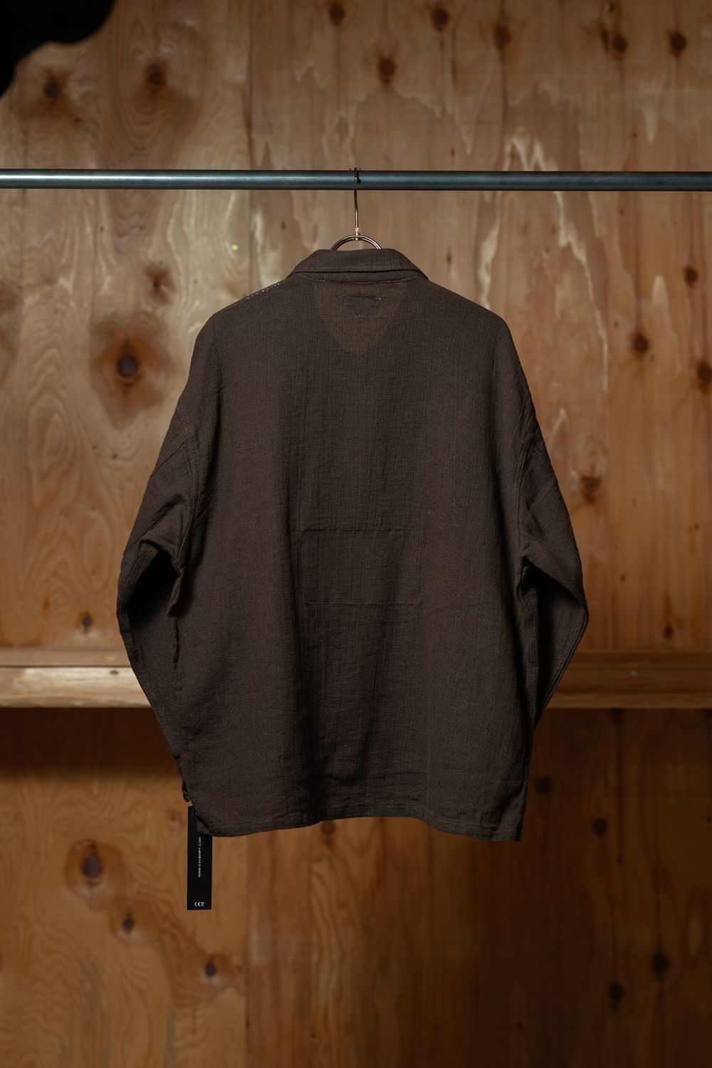 カラーはこのダークブラウン一色。新品でありながら、すでにくたびれたような表情を持っている。それがC.Eのつくり方の核心で、着る前から時間を纏っている。