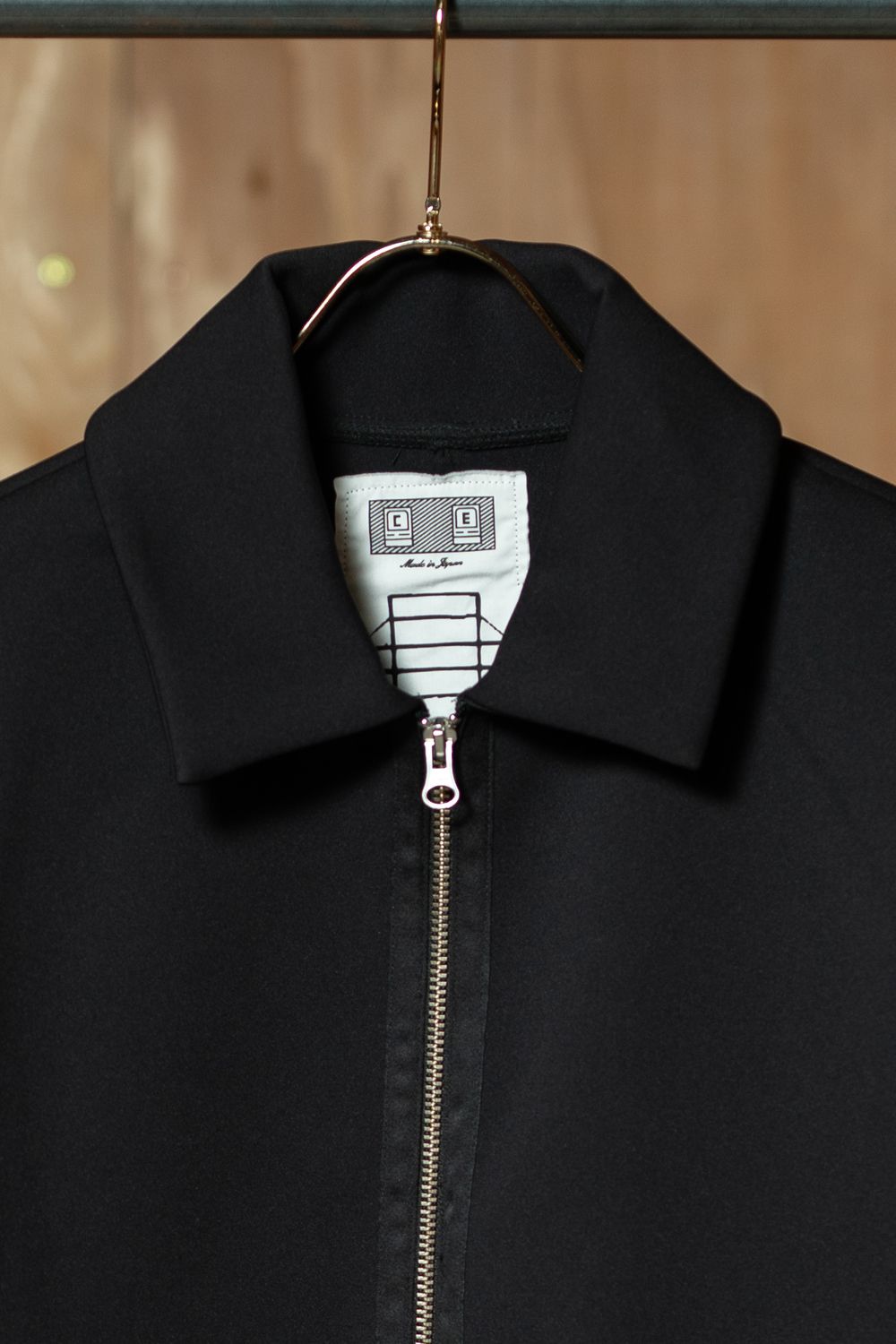 " スポーツとテーラリングの間で。衿裏のグラフィックパッチが哲学を宿す、ポリエステルスムースジャケット。日本製。 "