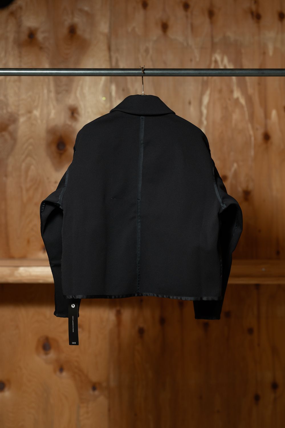背面はセンターの縫い目が一本通り、ショルダーから袖にかけてテープが走る。
