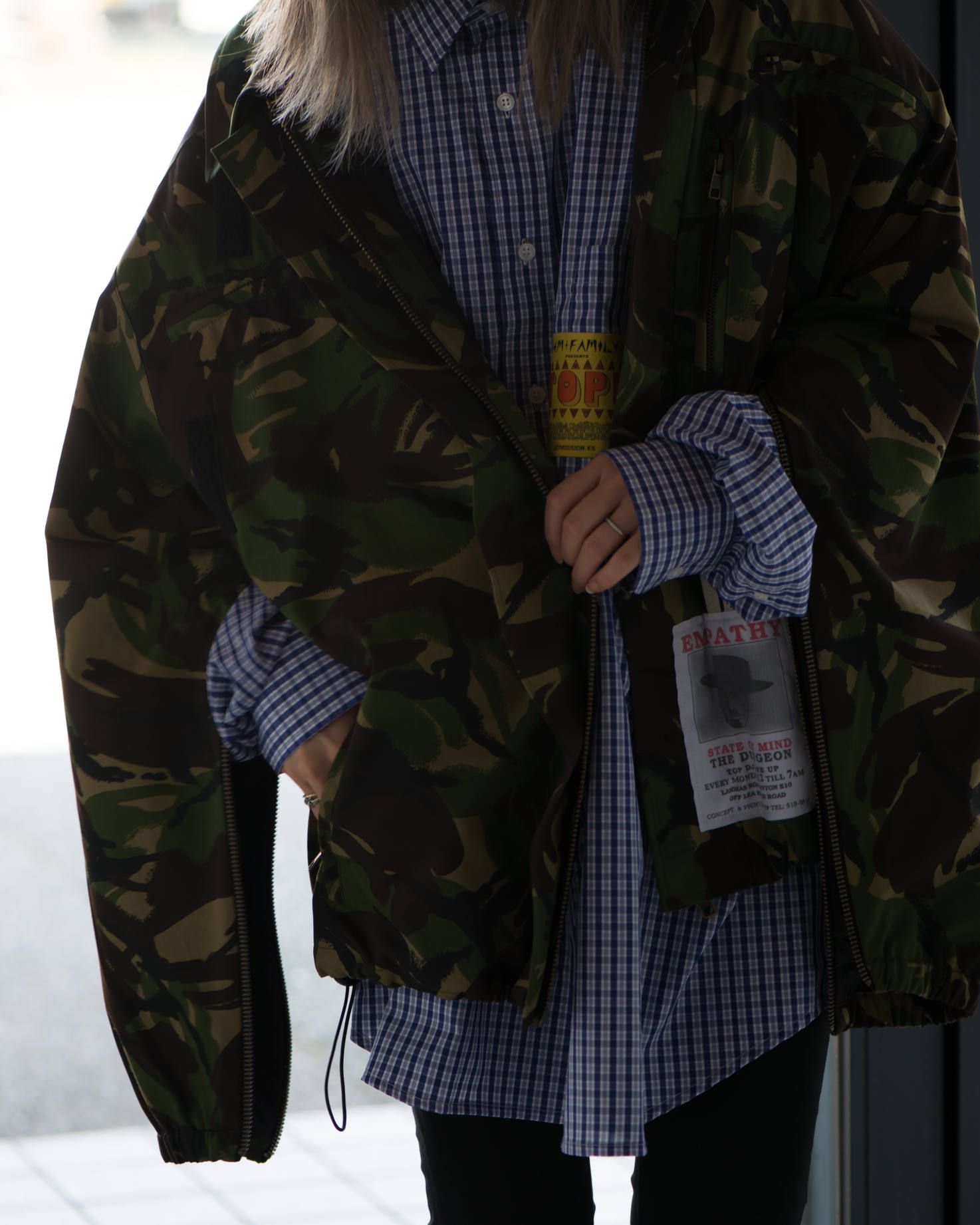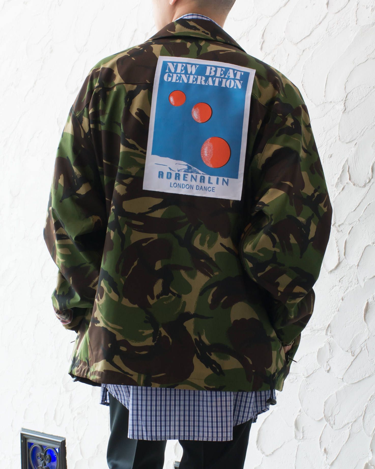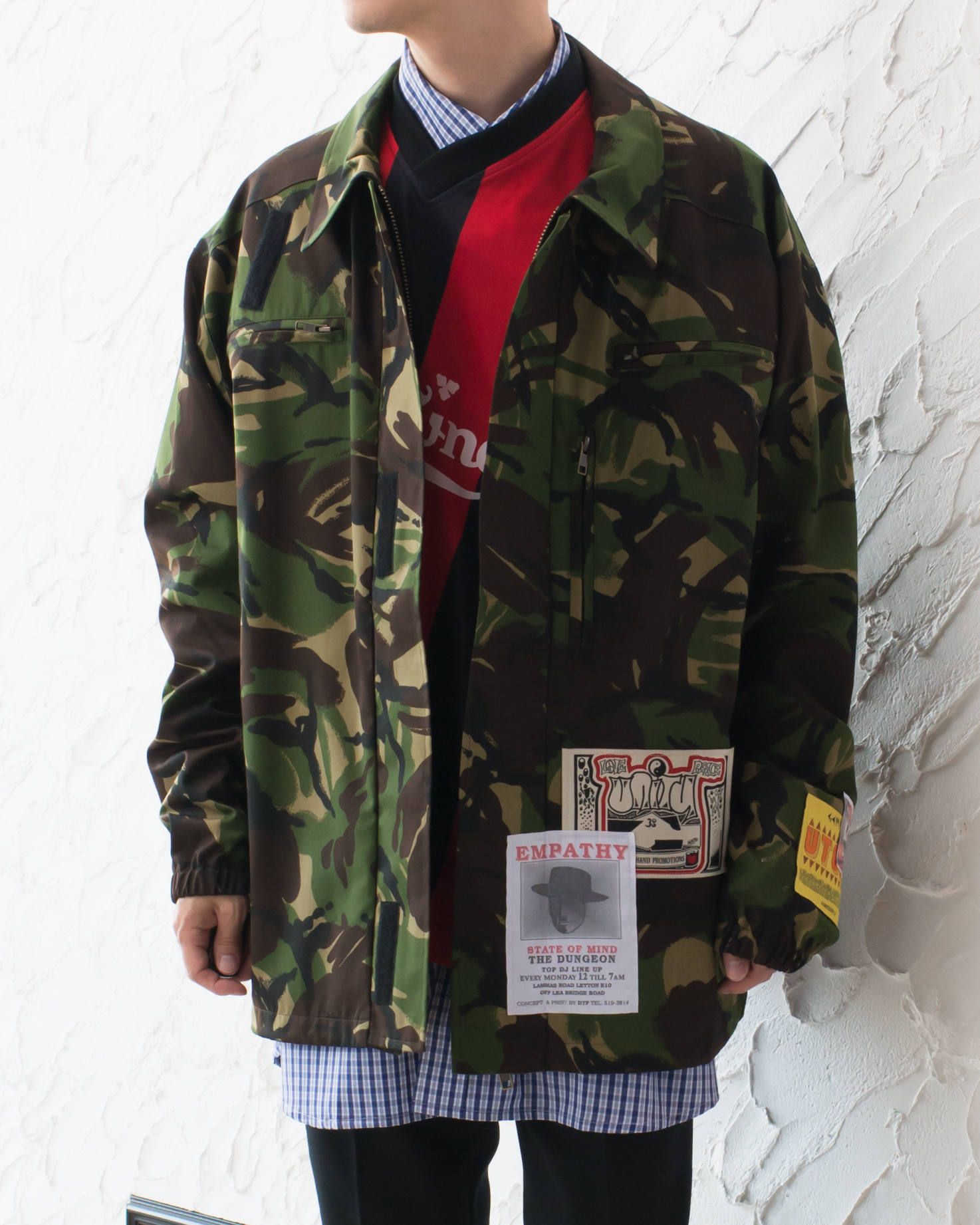 イギリス軍で採用されているブラッシュパターン柄を使用したアーミージャケット。随所に貼り付けられた布パッチデザインが特徴。裾はドローコードで絞ることができます。両わき近くまであるジッパーを開けてボレロ風に着用することも可能な斬新なデザイン。