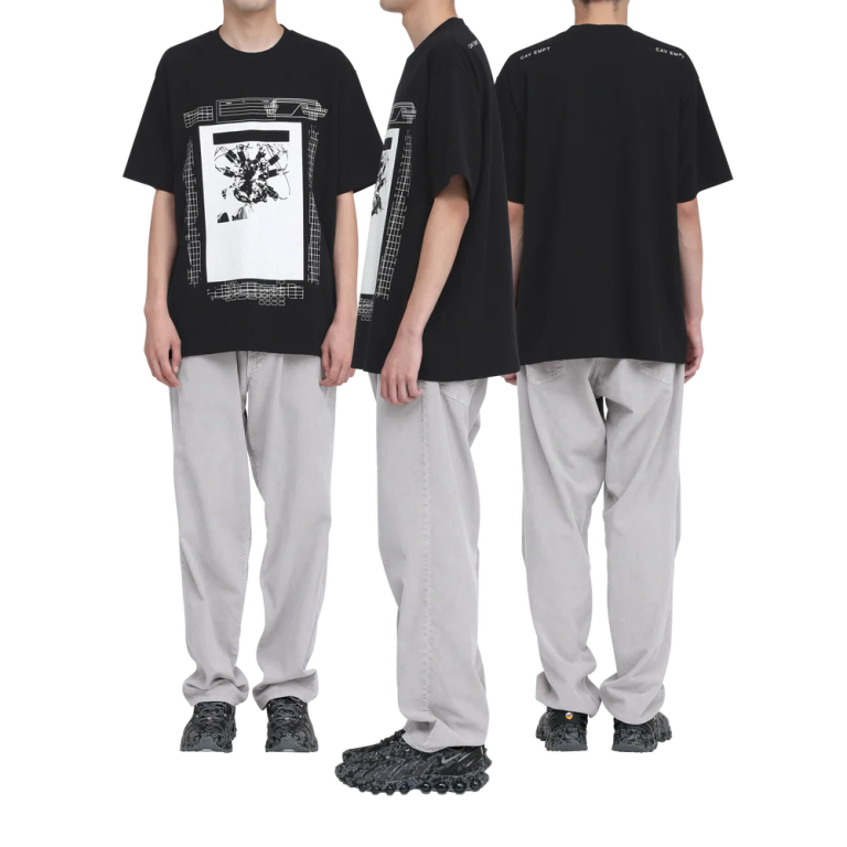 100%コットン。プルオーバー。クルーネック。セットインスリーブ。前身頃にグラフィック。後ろ身頃ショルダーにCAV EMPT。ウォッシュ加工。日本製。